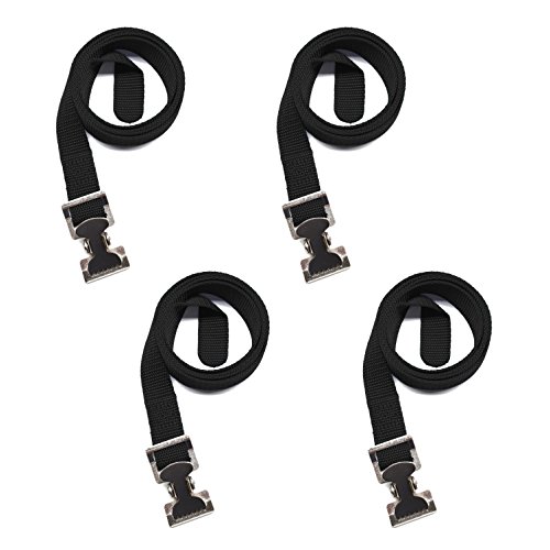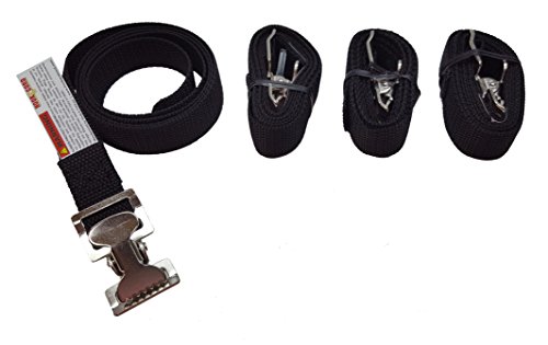 Utility Lashing Strap, 4-Pack, 1" x 48", Made in USA, Hook & Cord - Black