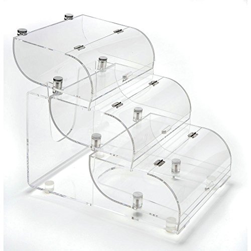 - Stepped configuration with three clear acrylic containers