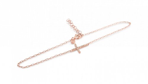 -. Title : Rose Gold-Tone Plated Cubic Zirconia Cross Anklet 9" + 1"
