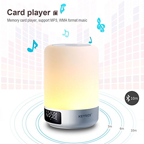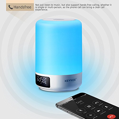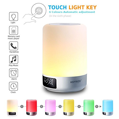 [Upgraded Version] Keynice All in One Touch Sensor Bedside Table Lamp with Led Bluetooth Wireless Portable Speaker Dimmable color chang Light ,Alarm Clock,Hands-free Military Time display-White …