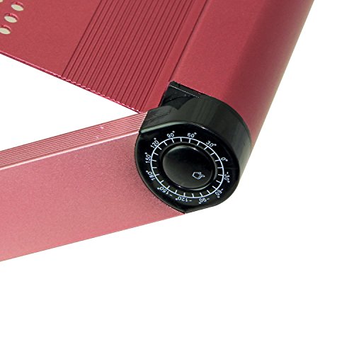 -. Binding : Office Product -. Brand : Sojitek -. Color : 07-Large-Red -. Feature : The high quality, anodized aluminum panel is incredibly durable, functional, and makes colors look beautiful. / Aluminum naturally dissipates heat, keeping your laptop running at a cooler temperature. / Drilled-in cooling holes enhance the cooling effect. This panel supports laptops of all common sizes. / The push-button joints on the base of the panel let you adjust the panel's angle in 15° increments from flat to vertical. / Each leg has 3 segments that are connected with push-button ABS joints. The auto-locking joints have 360° of adjustability. -. Label : SOJITEK -. Manufacturer : SOJITEK -. Model : LEPUSEMTE46453 -. MPN : A-REDLAR01-1 -. PackageQuantity : 1 -. PartNumber : A-REDLAR01-1 -. ProductGroup : Office Product -. ProductTypeName : OFFICE_PRODUCTS -. Publisher : SOJITEK -. Studio : SOJITEK -. Title : SOJITEK Heavyduty Red Wide 19" x 11.25" Adjustable Folding Ventilated Laptop Notebook Tablets PC iPad Table / Portable Bed Tray Book Stand