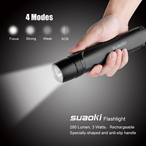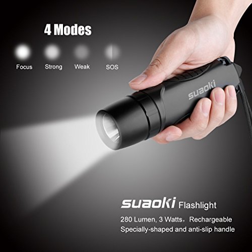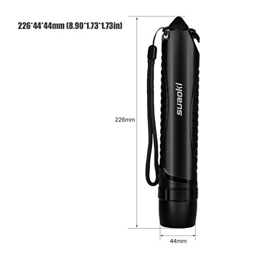 Lightweight and Portable: sleek and compact weighing only 315g, Suaoki TC6 flashlight weighs equivalent to iPad mini 4. Ergonomically designed and made of anti-slip material, take it wherever you go