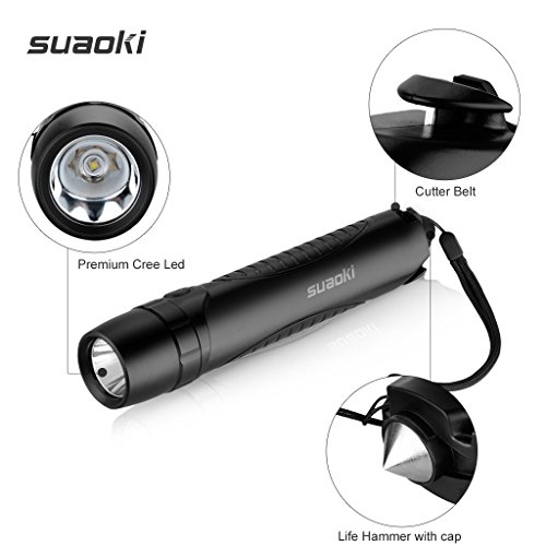 Four in One Solution: flashlight, power bank, glass smashing hammer and seatbelt cutter all combined in one Suaoki TC6 Flashlight, suitable for seeking objects, self-protection, emergency glass breaking or any outdoor survival