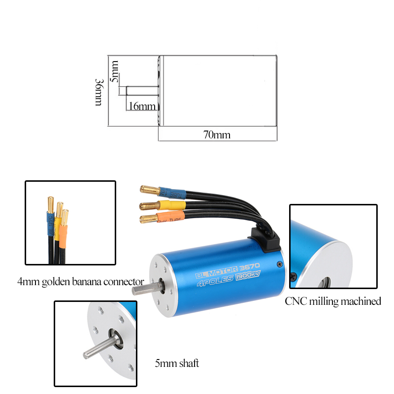 3670 1900KV sensorless brushless motor is designed to provide both quality and performance at an affordable price. It is built from high quality aluminum alloy which is produced from the latest CNC milling machines, and is designed with high power and rotation speed to provide longer run time.