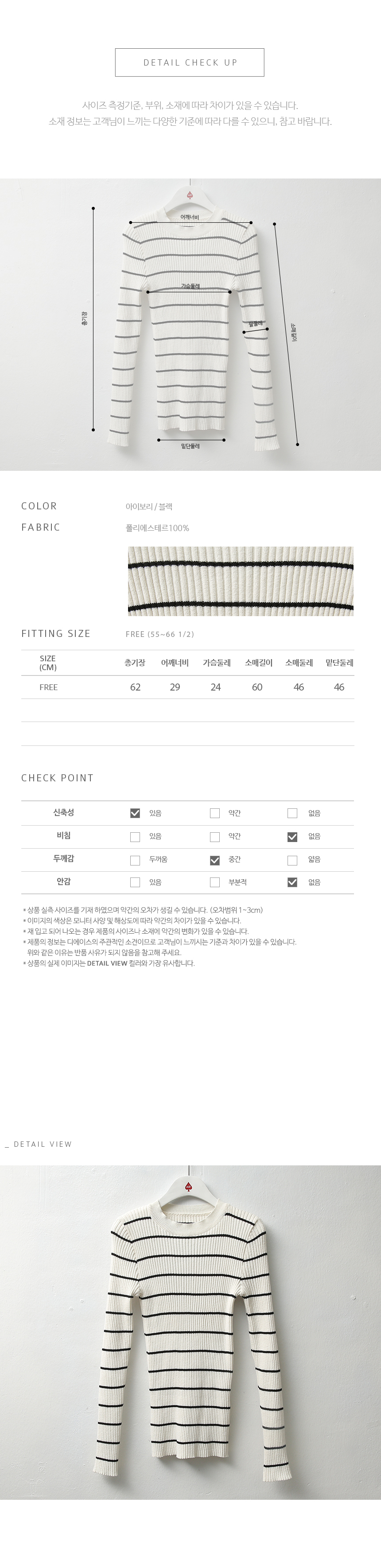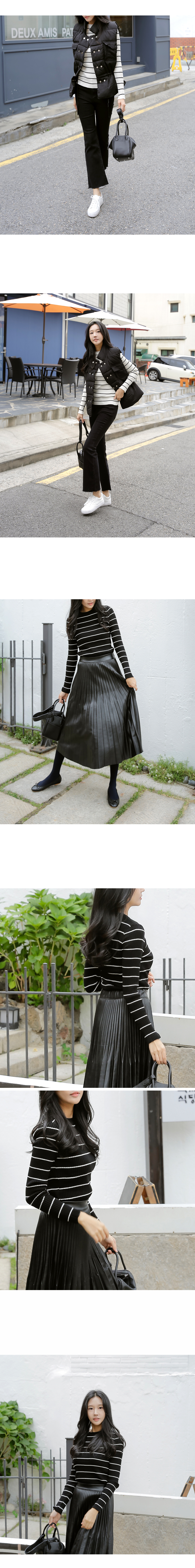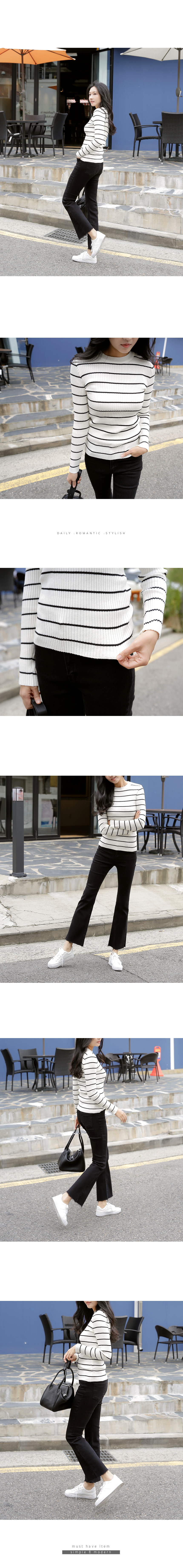 가성비 최고의 골지 가로줄 니트 골지 짜임의 부드럽고 쫀쫀한 기분 좋은 질감의 가로줄 기본 니트랍니다^^ 가로줄 배열의 폭이 넓은 시원한 느낌이 은근히 세련된 아이템으로 단독으로도 좋고 포인트 이너로 활용도 높은 아이템이에요! 색상은 아이보리, 블랙 사이즈는 FREE 44~66까지 가능하답니다.▼ 함께코디된상품 : 렉시 부츠컷 블랙진더블버튼 패딩베스트아코 페이크레더스커트