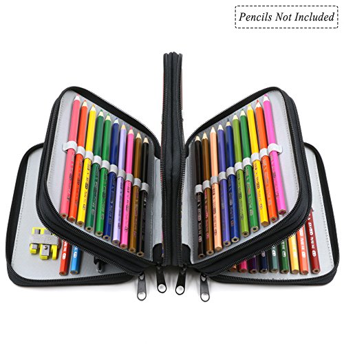 HIGH CAPACITY - 4 Layers with 72+3 slots designed. Each compartment has two sides of elastic holders, roomy for all your pencils, pens, markers, brushes and erasers / sharpeners.