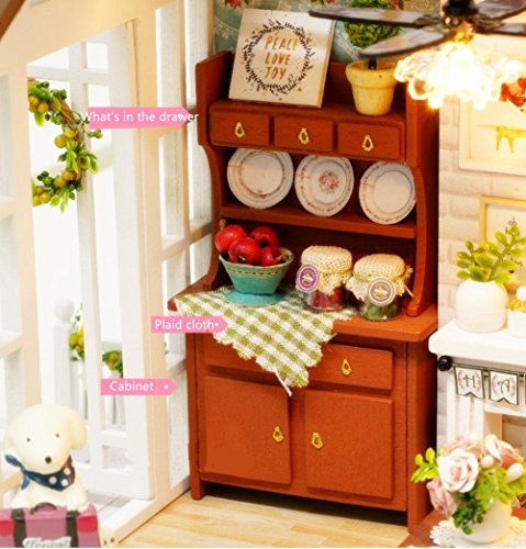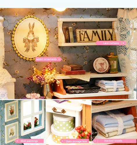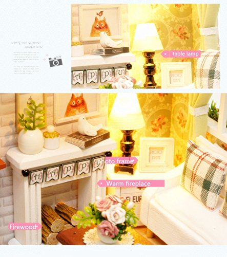 -. Feature : Everyone has a dream house,our miniature house including all furniture and accessories , you can DIY a house of your own style for yourself now. / Material:Safe and non-toxic materials include wooden, paper,plastic and cloth. Finished Product Size:8.26*4.92*5.10 inches / •Tiny pieces from cut paper to paste on things,sew bonding,assembly,almost all the features require handmade., do not be afraid of this chanllenge.you will get the joy after you have finished assembling it. / Mainly through the DIY process like bonding, assembling, sewing, shape, placement etc to finish it.,.Imporove Creative and Cooperation Skills ,help you to enhance assembly ability / •Package including all furnitures and accessories, The instruction is in English each steps has been clearly showed in the instruction with pictures to guide you to DIY the house