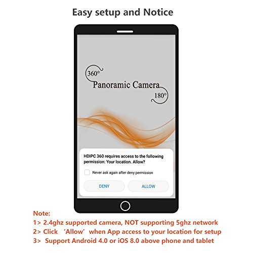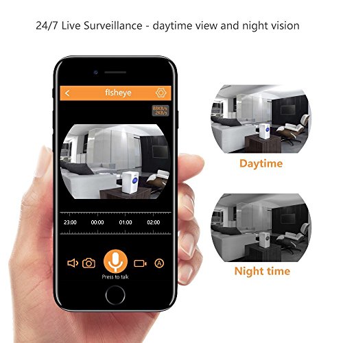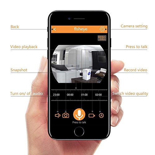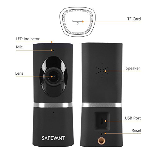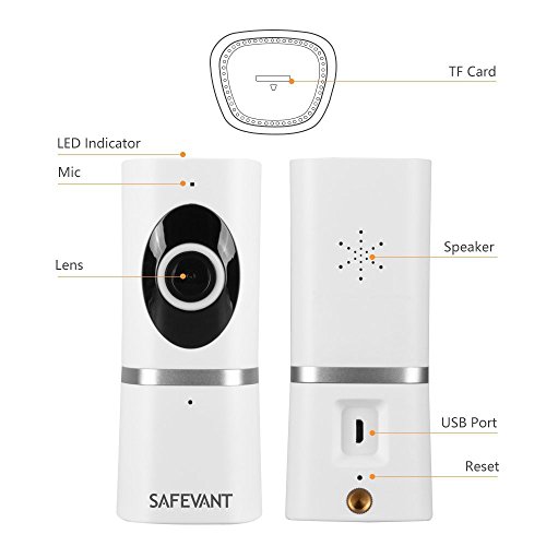 -. Feature : MULTI-FUNCTIONAL DEVICE: Record and playback, remote control, two-way talk, take photos, motion detection (Micro SD card required) are all fulfilled by this protable camera. Seamlessly stream video directly to your smartphone or tablet. Notice: Camera ONLY support?Android?4.0?or?iOS?8.0?above?phone?and?tablet. / PROFESSIONAL FISHEYE CAM: 1/3'' fisheye lens, 180¡ã wide viewing angle, 1080P HD video resolution, h.264 video compression, and digital zoom make it possible to check all details and get a closer view. Moreover, amazing 3D Vision can be achieved by rotating on-screen picture 360¡ã. / TWO-WAY AUDIO: Stay in touch with built-in speaker and mic, listening and responding to what is going on while watching. Tell your dog to get off the couch or tell intruders that the police are on the way. / EASY SETUP: Simply plug in the power cable, download the app and add device by following on-screen instructions in just minutes. Notice: 1) Please click ¡®Allow¡¯ when App access to your location for setup. 2) Safevant camera is 2.4ghz supported camera, not supporting 5ghz. / MOTION DETECTION: Putting micro SD card (up to 128g) in the camera first to activate alert function, App alerts sent to your mobile device when motion is detected.?Continuous day/night surveillance is accomplished by IR-CUT smart system, powerful IR-LED for night vision up to 16ft.?Any concerns, our support team is available at 1-866-380-1888.