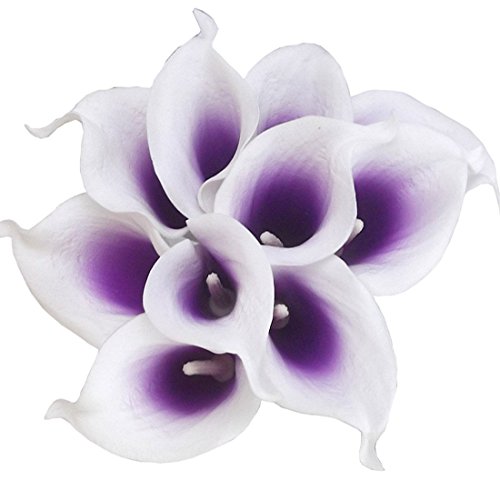 Beautiful artificial flower:calla lily,dark purple petal with white core. Similar to picasso. Perfect desk ornament.