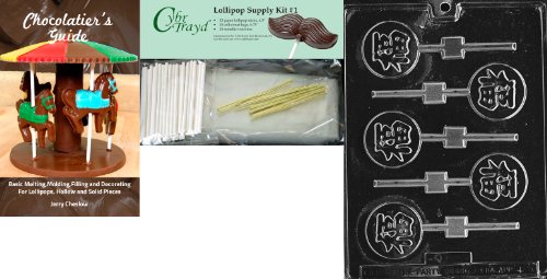 Cybrtrayd Good Luck Lolly Chocolate Candy Mold with Chocolatier's Bundle, Includes 25 Lollipop Sticks, 25 Cello Bags, 25 Gold Twist Ties and Chocolatier's Guide