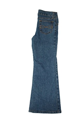 Five-pocket bootcut jean with stitching and internal elastic waistband