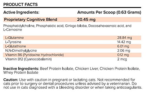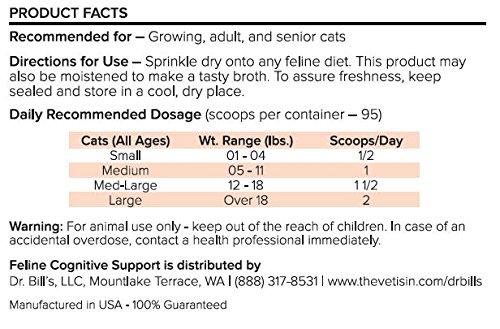 -. Feature : Dr. Bill's Feline Cognitive Support contains natural ingredients that support healthy brain function / Slows cognitive decline in the aging feline / Using biologically-approP.R.Iate, high-quality, natural ingredients such as Ginkgo Biloba, DHA, L-Carnosine, Vitamin B12, L-Glutamine, and L-Tyrosine / Quality, Human-grade Ingredients / Made in USA