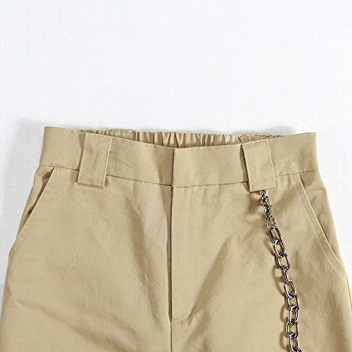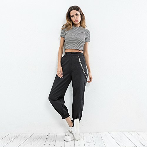 -. Feature : Material: 95% Cotton + 5% Spandex / Feature: High Waist, Loose fit Cargo pants, Chain Decoration / Size: We are Asian size, please refer to the Size Chart in the Product Picture before Ordering! / Ideal and comfortable casual pant for outdoor activities (hiking & camping) and relaxing weekends. Makes you more Simple and elegant fashion. / Wash instructions: Hand Wash Cold; Soft Machine Washing; Line Dry