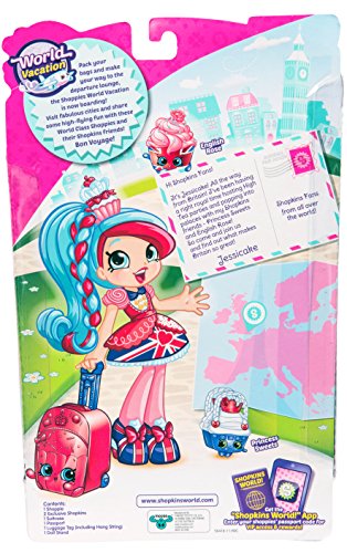 Each Shoppie comes with 2 Exclusive Shopkins, 1 suitcase, 1 Passport, 1 Luggage tag and 1 doll stand.