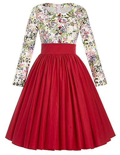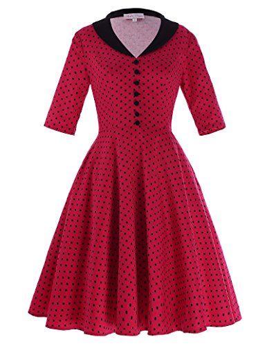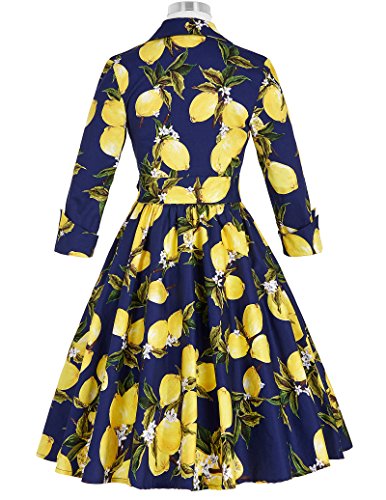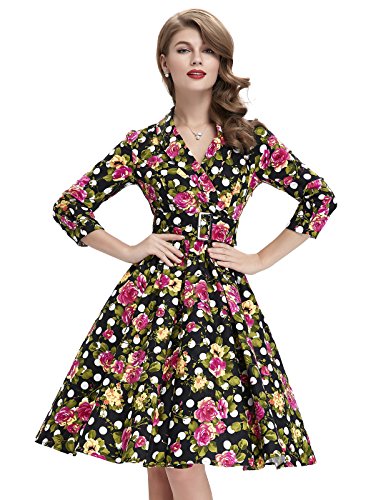Design: 3/4 sleeve, lapel collar, v-neck,concealed zipper at left, matched belt, classic vintage floral and polka dot patterns or classy fruit prints patterns are for your choice