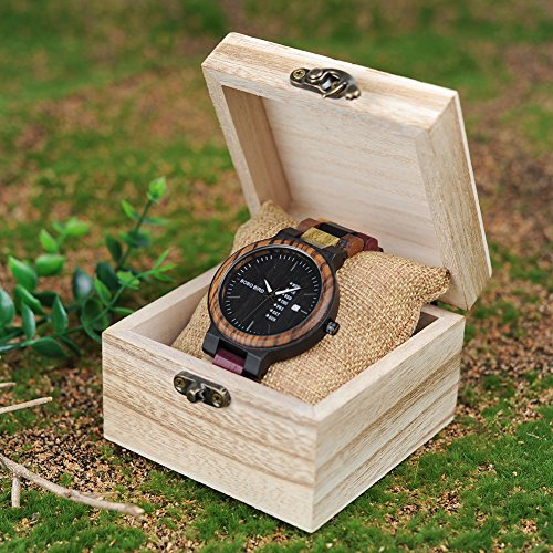 Perfect Gift Package -- 1 * wooden watch, 1 * unique wooden box, 1 * watch repair tool, 1x English instructions. Excellent Gifts for Christmas, Birthday, Anniversary, Father's Day, Graduation or Valentine's Day.