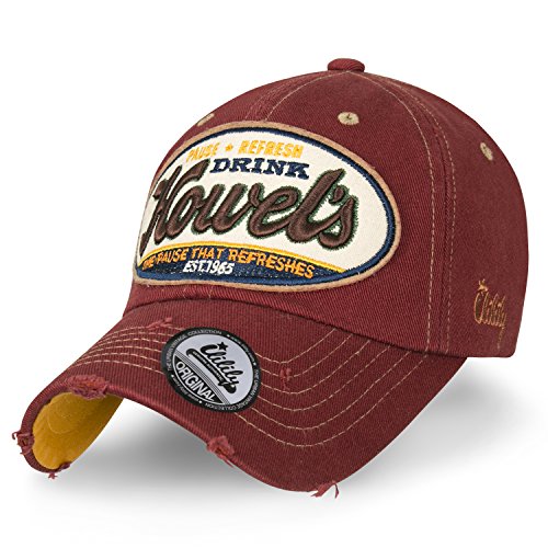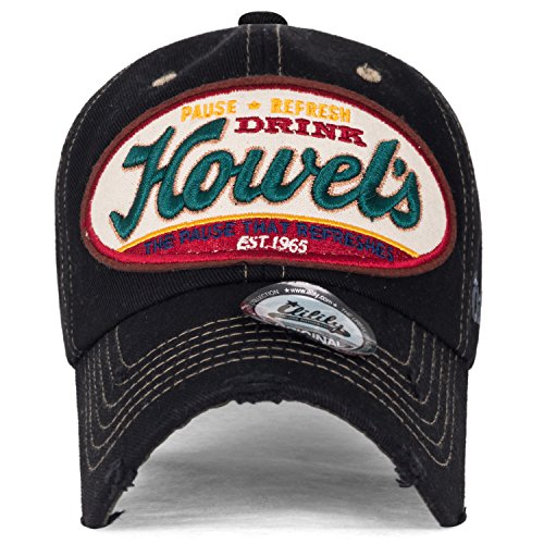 Binding : Apparel Product Description ililily Howel's Distressed Vintage Solid Color Cotton Baseball Cap Trucker Hat Style: highly raved HOWEL'S classic snapback baseball cap trucker hat NOWIN CLASSIC RED , BLUE and BLACK colors! classic 6 panel unstructured baseball cap with adjustable buckle strapback Trim/Embellishment: classic embroidered HOWEL'S patch logo on front, ililily brand logo embriodery at side. drink howel's distinctive embroidery patch at the back of cap. simple, versatile and classic cap. a must have basic wardbrobe essential! Crown: 100% SOFT COTTON round crown to ENSURE COMFORT. round top button and COLORCONTRASTING EYELETS . inner of cap is lined with sweatband for optimal wearing comfort Brim: DISTRESSED RIPPED CURVED deisgn for a vintage chic look. a different inner brim color is meticulously chosen FOR CONTRAST Colors and size: 3 colors. inner band: approx. 22.8' / 58cm / brim width: approx. 2.87'/ 7.3cm Material: 100% Cotton Wash Instruction: Do not wash, wipe with moist cloth Measurement: Medium Inner Band:58cm (7 1/4)