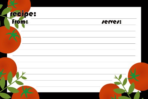 Product Description Meadowsweet Kitchens Red Tomato Recipe Cards are 4" x 6" and have lines on the back; 25 per pack; will fit in most recipe card boxes. 0