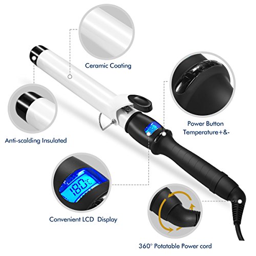 Tiboon Curling Iron with Ceramic Coating, Hair Curling Wand 1.25 inch Dual Voltage with Temperature Control , Auto Shut Off for All Types of Hair
