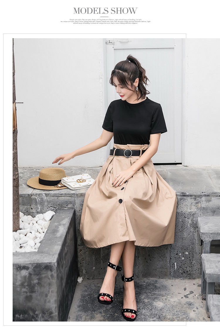 ★素材:ポリエステル.コットン ★生地の厚さ:普通 ★セット内容:トップス+スカート ★生産国:中国 ★カラー: (写真参考)★サイズ(cm)S:着丈51 肩幅35 バスト77 スカート丈72 ウエスト64 M:着丈52 肩幅36 バスト80 スカート丈73 ウエスト66 L:着丈53 肩幅37 バスト83 スカート丈74 ウエスト68※サイズは人の手によって測っているため、1-3cmの誤差がある場合がございます。予めご了承下さいませ。