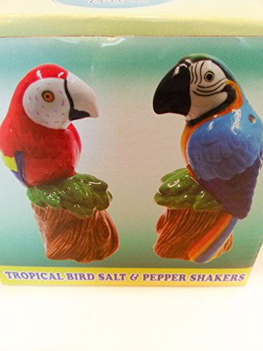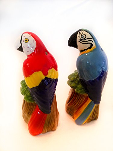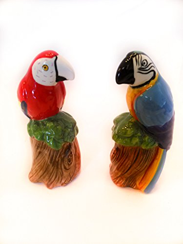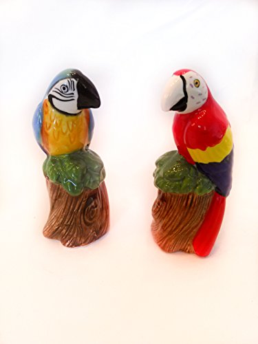PARROT Birds SALT & PEPPER Shaker Set Kitchen Tabletop Decorations Accents 5" Figurine Christmas Gift Red Blue