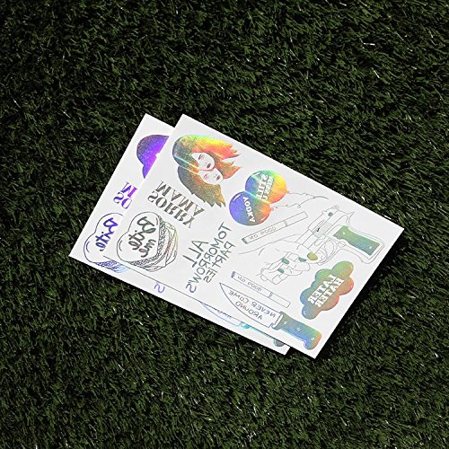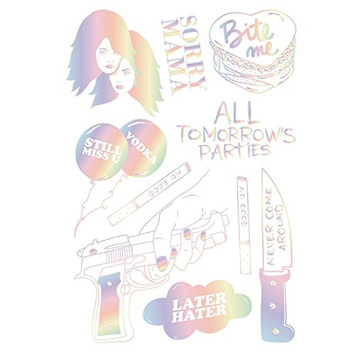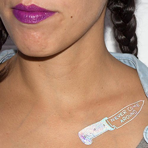 -. Title : Tattify Holographic Rebellious Temporary Tattoo Sheet - Bad Girl (Set of 2 sheets) Fashionable Metallic Holographic Guns Knives and Hearts Removable Fake Temporary Tattoos