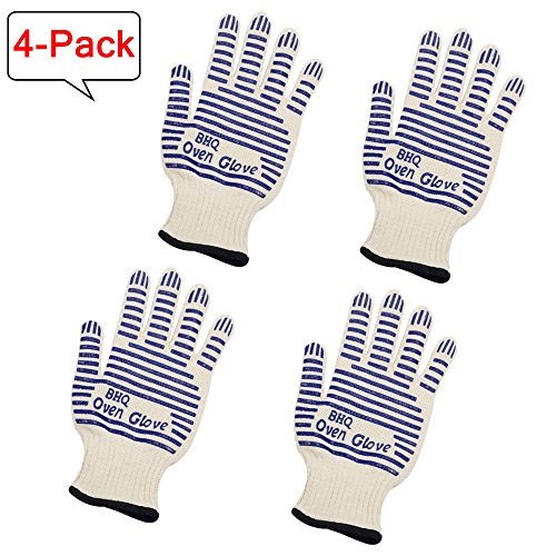 BHQ 4-Pack Cotton Oven Glove,Heat Resistant Surface Handler Charcoal Grill Accessory, Mitt SafeTouch Nitrile Exam Non Latex Smoker Fry Bake, Fireplace Smoking Powder Free for Baking Barbecue,Blue … …
