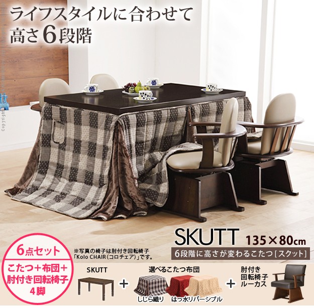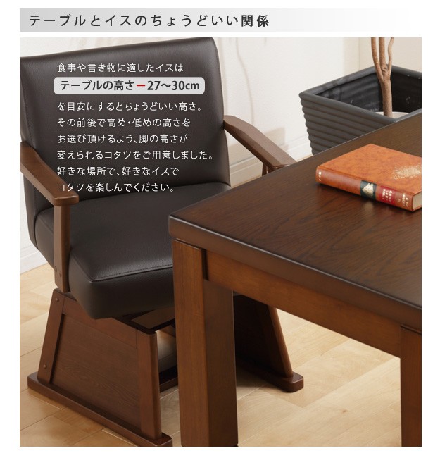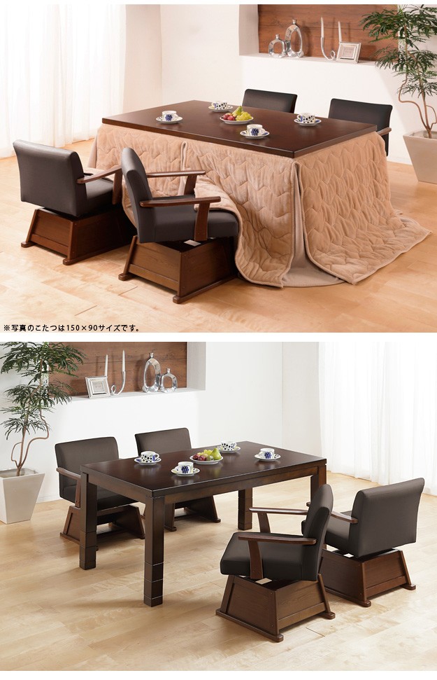 セット内容:こたつx1台、こたつ布団x1枚、肘付回転椅子x4脚