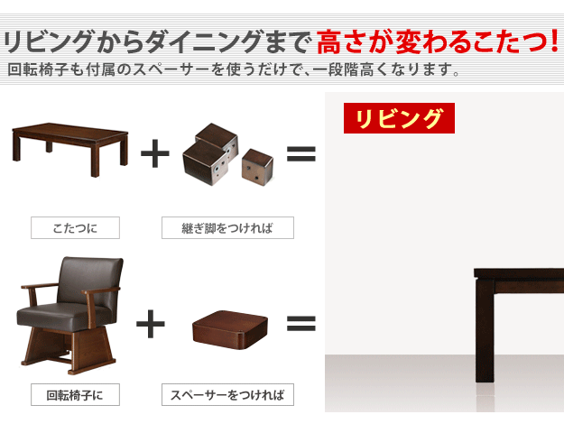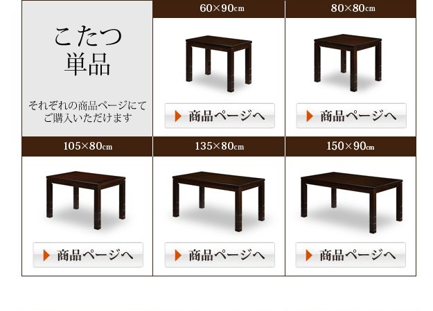 サイズ(cm):こたつ-幅135x奥行80x高さ70(45/50/55/60/65)・約31kg、椅子-幅57x奥行54x高さ72(67)・約10.5kg、布団-295x240cm