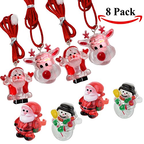 Studio : Joyin Toy Publisher : Joyin Toy Binding : Toy Product Description SUPER VALUE with 8 Pack Christmas LED Light Up Ring and Necklace Party Favors. Including Santa, Reindeer and Snowman Designs. Perfect for Christmas Xmas Party Favor, Holiday Family Celebration Party, Christmas Dress-up Accessories, Christmas Light-up Toys, Christmas Holiday Decorations, Night Clubs. SO MUCH FUN. The Flashing Rings can be Also Used as Christmas Necklace with The included String. Bring Festive Joy to the Whole Family! EASY TO USE. Switchable Button Batteries Included Installed. Ready for Immediate Use. Batteries are Replaceable. MONEY BACK GUARANTEE- "Contact Seller" and we will refund you or ship you a replacement if the one you received fail to work in 90 days. 0