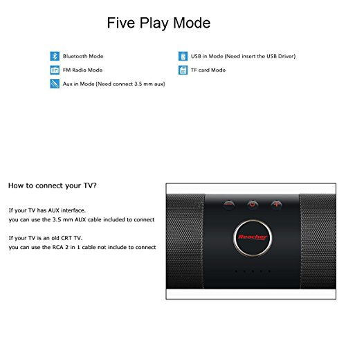 Reacher Bluetooth Wireless Speaker, Multi-functional Portable Mini Soundbar, Built-in FM Radio, Microphone TF Card Reader, USB Host, AUX Line-in