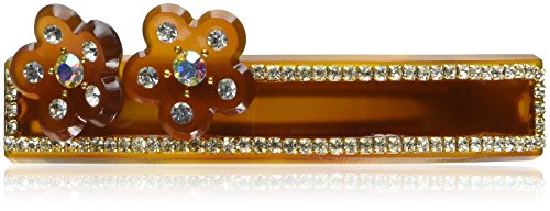 Caravan Two (2) Handmade Tortoise Shell Flowers And Bar Beautified With A Total Of 82 Clear Rhinestones