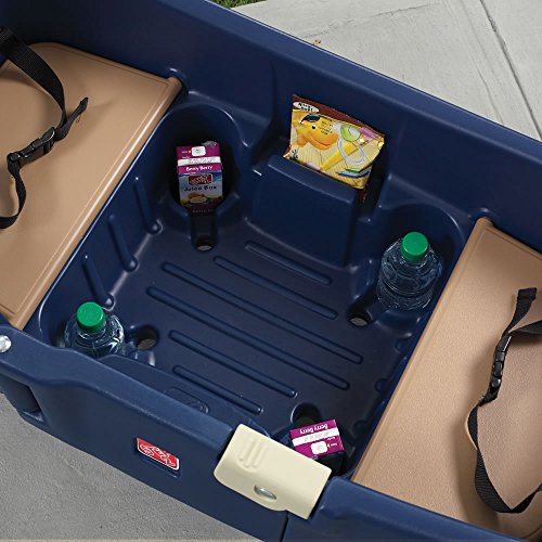 -. Feature : Features Whisper Wheels for smooth quiet ride / Seats flip into a flat bed, seat or table / 6 cup/snack holders for children and parents / Handle folds under wagon for easy storage or transport / Adult assembly required