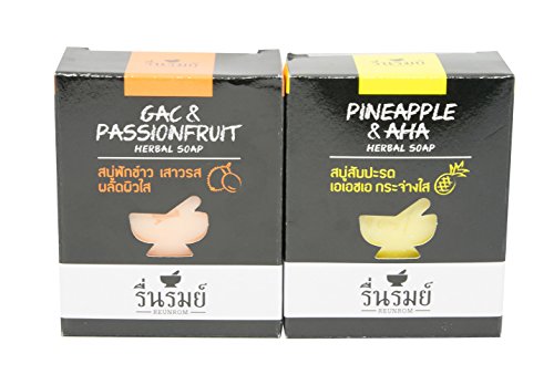Set Reunrom Gac & Passionfruit + Pineapple & AHA Herbal Natural Bath & Body Bar Soap Brightening Whitening Soft Smooth Skin