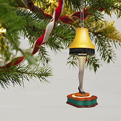 The leg lamp with fishnet hose is one of the most iconic movie props of all time. Like the lamp, this Christmas tree ornament lights up to grab your attention. Three replaceable LR41 alkaline batteries included.