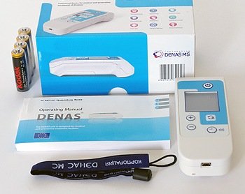 Studio : Denas MS Publisher : Denas MS Binding : Health and Beauty Product Description Denas device 2nd generation uses the method of dynamic electroneuroadaptive stimulation, known as Scenar. It is effective for treatment of acute respiratory diseases (cold, tonsillitis etc), headache, toothache, menstrual pain, muscle and joint pain, as well as osteochondrosis (neck pain, back pain) and many other diseases. The device alleviates inflammation, edema and promotes healing of wounds, fractures and burns. The new device replaces its precursor the legendary after 8 years of successful sales. The 2010 model has a compact and ergonomic body, a large informative LCD, a countdown timer, extra therapeutic frequency of 140 Hz and, more importantly, a plug connector for connection of remote electrodes. The device exposes in two modes: Therapeutic (77 Hz and 140 Hz) and \Test\ (10 Hz). Both of them can be used for diagnostic and treatment General Specifications for device: Batteries: 2 1, 5 V LR6/AA (because of the custom rulesnot included). Frequencies: Frequency settings possible with the device 10 Hz, 77Hz, 140Hz. The device generates bipolar electrical pulses able to dynamically adapt the changes of the skin impedance. 0
