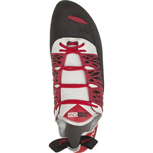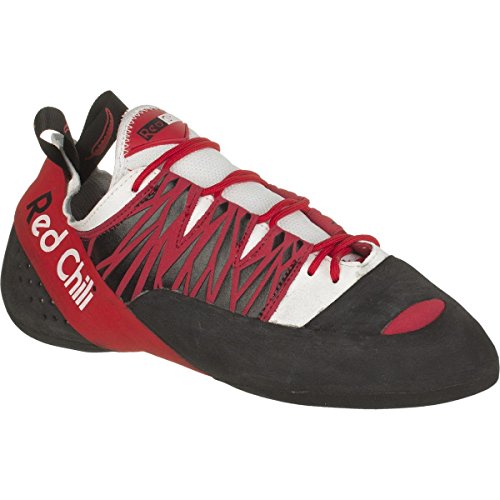 Studio : Red Chili Publisher : Red Chili Binding : Apparel Product Description Red Chili designed the Men's Stratos Climbing Shoe for hard edging on technical routes whether you're at the gym or crag. A two-part last equips the Stratos with a stiff toe and flexible heel. The stiff toe maximizes edging performance on the smallest footholds, while the flexible heel includes a strong slingshot rand to ensure a secure fit. Red Chili added a rubber toe cap to reduce stretch and ease toe hooking. The leather footbed practically eliminates any slipping, and the RX2 rubber gives a great grip on slippery stone. An ever-so-slight downturn helps you conquer more overhung routes at the gym, but this shoe works best on dead vertical routes. 0