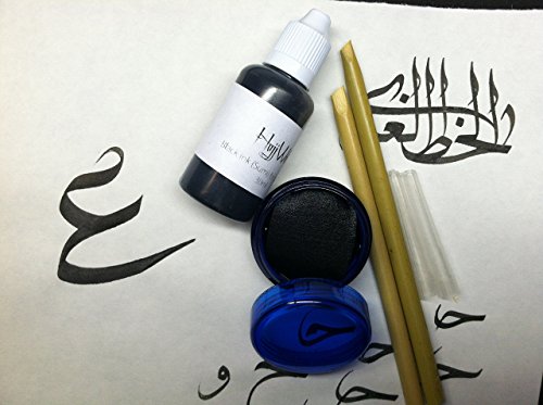 Arabic Calligraphy set 2 Reed pens, Black Ink and plastic ink jar