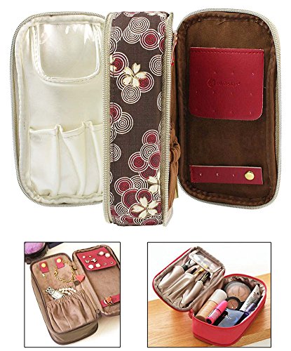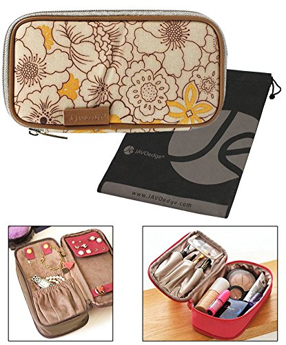 -. Brand : JAVOedge -. Department : womens -. Feature : Size: 8" x 4.5" x 3.5" / Organize jewelry and cosmetics together all in one place in the double-sided Travel Pouch / Cosmetics compartment has pockets for brushes, foundation, lipstick, face wash, and any other cosmetic or toiletry essentials / Jewelry compartment has earring holder, ring holder, and elastic pockets / Lightweight, durable, waterproof nylon material for light travel. Has two separate sides with zipper closures / JAVOedge is a registered trademark and is exclusively distributed by JAVOedge. Other seller offerings are counterfeits, they will not be identical to what is advertised here. -. Label : JAVOedge -. Manufacturer : JAVOedge -. MPN : SIZECLR-00628 -. PackageQuantity : 1 -. PartNumber : SIZECLR-00628 -. ProductGroup : Apparel -. ProductTypeName : APPAREL -. Publisher : JAVOedge -. Studio : JAVOedge -. Title : Double-Sided Cosmetic Fabric Toiletry and Jewelry Bag Travel Organizer (8" L x 4.5" H x 3.5" W) with Bonus Reusable Bag