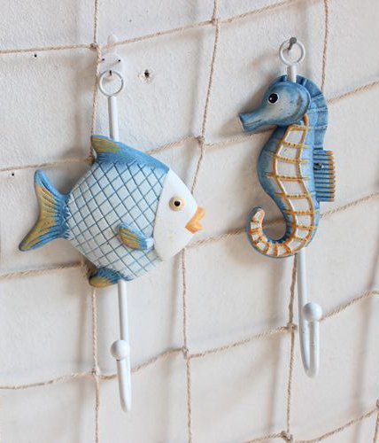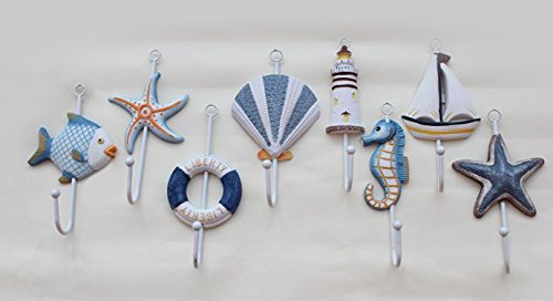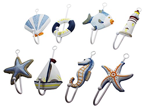Beach Themed Coat/Robe and Hat Wall Hook - Set of 8 Assorted Seashore