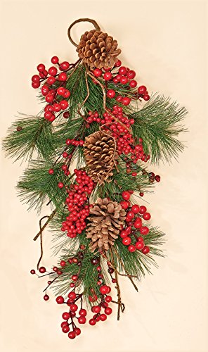 Worth Imports Weatherproof Berry Pinecone Pine Teardrop, 28"