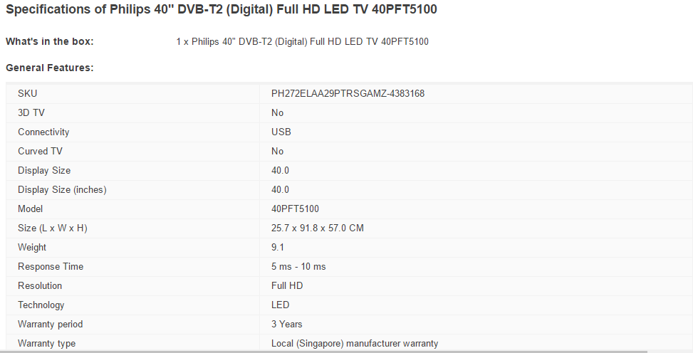 Product details of Philips 40inch T2 FHD LED TV Black 40PFT5100