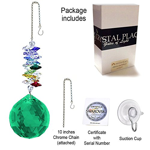Crystal Ornament 4.5 inch Suncatcher Emerald Green Faceted Ball Prism Rainbow Maker Crystal Cascade Made with Swarovski crystals by CrystalPlace