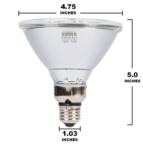The Simba Lighting™ 70 Watt PAR38 120V Halogen Flood Light is made with high quality, for both indoor and outdoor uses in homes and commercial buildings. Common uses include recessed lights and outdoor flood lights, etc. The halogen PAR flood lights are more energy saving comparing to traditional incandescent floods. The 70W light bulbs produce the same amount of light or luminous flux as the traditional incandescent 90W to 100W light bulbs. These light bulbs are dimmable. When shopping for light bulbs, it is important to match the dimensions and other key specs to make sure you are purchasing the correct light bulbs. The diameter of the light bulb is 4.75 inches and length is 5 inches. These bulbs work with 110V 120V 130V A/C voltages. The base is E26 medium, which is the most commonly used light bulb base in North America. The color of the light is soft white and the light temperature is 2700K. The beam angle is 30deg. Average lifetime is 2000 hours and it can last switching on and off of about 8000 times. The Simba Lighting™ light bulbs are also RoHS and CE certified. No mercury content in the halogen bulbs, as opposed to other commonly used energy efficient light bulbs. 0 |