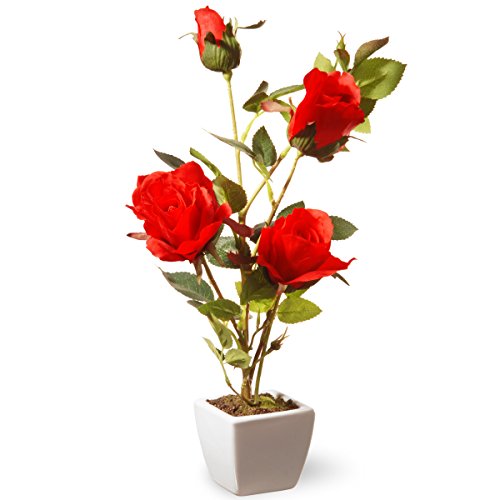 National Tree 15 Inch Red Rose Flowers with White Square Ceramic Base (NF36-5179FJ-1)