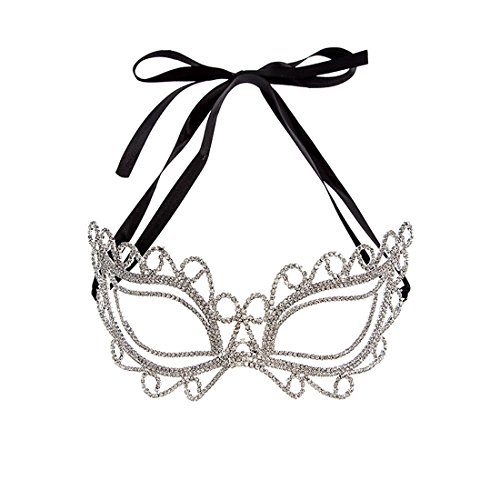 -. Brand : Crazy4Bling -. ClothingSize : Medium -. Color : Metallic -. Department : womens -. Feature : Create some drama at your next costume event or ball. This mask features swirls and curls of sparkling rhinestones that will add a touch of elegance to your look. Ties comfortably in place with soft black ribbon ties., Black Ribbon Ties, Width (approx.): 8.0�, Height: 3.75� -. Label : Crazy4Bling -. Manufacturer : Crazy4Bling -. Model : FB-M71499C1_M -. MPN : 5653 -. PackageQuantity : 1 -. PartNumber : 5653 -. ProductGroup : Apparel -. ProductTypeName : ADULT_COSTUME -. Publisher : Crazy4Bling -. Size : Medium -. Studio : Crazy4Bling -. Title : Silver Rhinestone Crystal Cutout Costume Party Prom Masquerade Ball Eye Mask