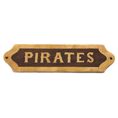 Wood and Brass PIRATES Nautical Wall Plaque Sign 8"x2"