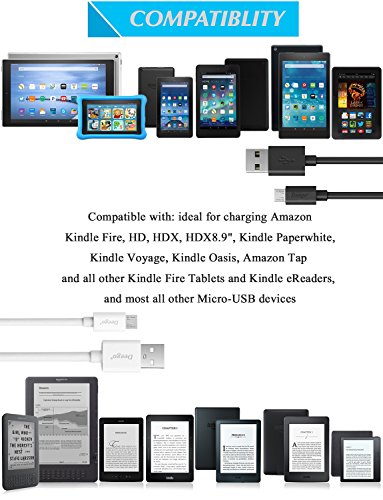 Compatible with: ideal for charging Amazon Kindle Fire, HD, HDX, HDX8.9", Kindle Paperwhite, Kindle Voyage, Kindle Oasis, Amazon Tap and all other Kindle Fire Tablets and Kindle eReaders. Also, Samsung Note 4/5, Galaxy S3/S4/S5/S6/S7 Edge, HTC, Motorola, Nexus, Nokia, LG, HP, Sony, Blackberry, MP3 and other Micro USB compatible devices