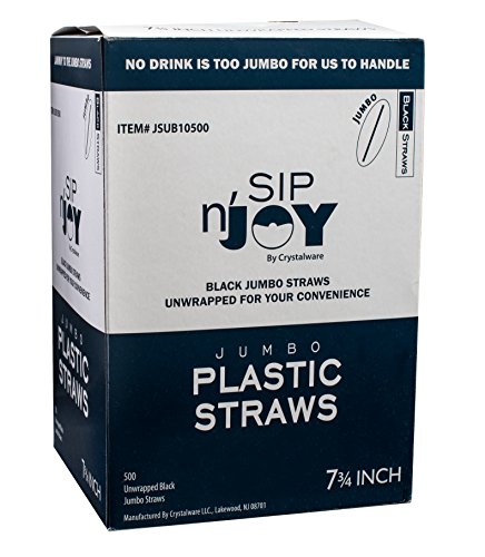 -. Feature : READY TO USE: Disposable unwrapped plastic straws in dispenser box of 500 pieces / JUMBO SIZE: Over 7 inches long, perfect for all soft and hard drinks / PREMIUM QUALITY, FOOD SAFE: High quality straws made from food-grade BPA-Free Polypropylene (PP) / GLOSSY BLACK: Perfect to add a more sophisticated look to any beverage / MULTIPLE USES, FOR ALL YOUR NEEDS: Great for bars, concession stands, food service, schools, institutional and all home and party beverage use.