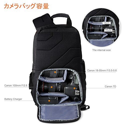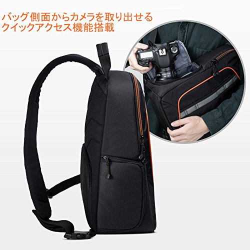 -. Feature : 商品サイズ: 23cm x 14cm x37cm;重さ:約580g 。 一眼レフカメラ本体+レンズ1本+アクセサリー類(ストロボ、iPad Mini、小型三脚、メモリーカード、ケーブル、バッテリー、チャージャー、フィルター等)。 / 【スリングスタイル・斜め掛け】:カメラ機材を保護するために、厚目の仕切りパッドを使用。スリングスタイルは背中からフロントへスライドさせることでカメラを簡単に取り出すことができる。 / 【レインカバー】:高密度ナイロン生地、弾力強いエアクッション、高品質ファスナー、耐衝撃クッション素材使用、三脚取付可、隠しポケット。収納ポケット類が豊富に取り付けられており、小物などを分類して収納できる。突然の雨にも安心なレインカバーも付属される。 / 【下部+上部 2気室】:下部にカメラ機材、上部にそれ以外のアイテムを収納できる2気室構造のカメラバッグ。クッション構造のストラップを採用し、幅の広い肩ストラップは、重量を均等に分散して、持ち運びが容易になるようデザインされています。 / 弊社は長年間カメラの部品業界を従事して、高品質で低価格な商品と完璧なサービスを提供しております。2年間限定の保証付き、ご安心ください。